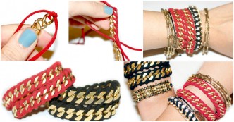 These bracelets are so cool. I specially like the metal feel. To make them, you need sudede rope (3 yards) metal chain …