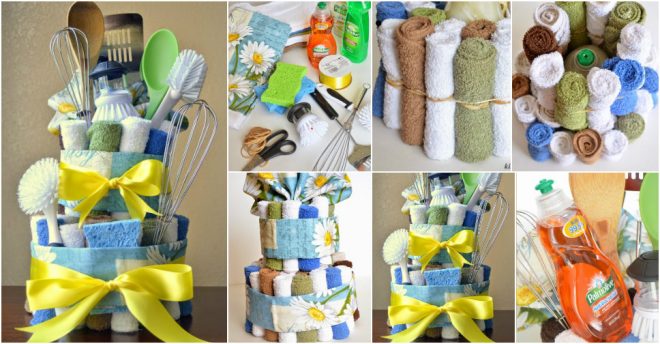 Today we will share with you How To Make A Dish Towel Cake. A dish towel cake is an excellent gift for a housewarming party.