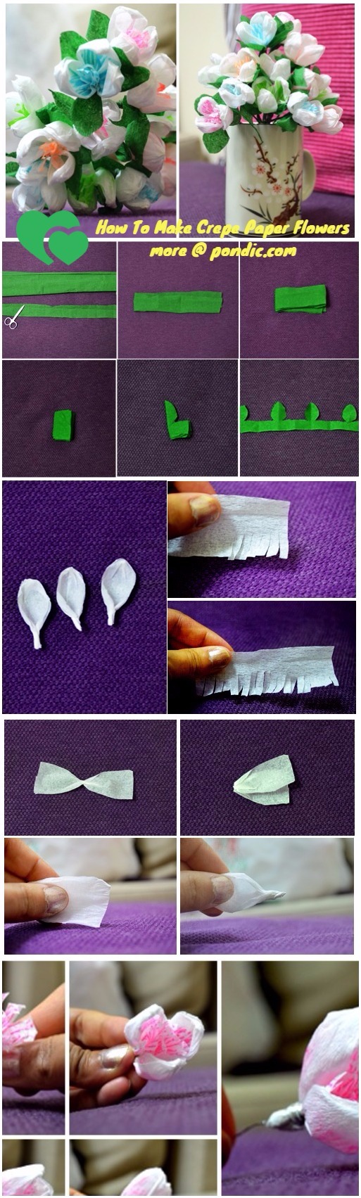 How To Make Crepe Paper Flowers Crepe paper is perfect for making flowers. You can make a beautiful bouquet to decoration your room. Today we are excited to share with you How To Make Crepe Paper Flowers. What you will need are Crepe paper – White and dark green Floral wire Floral tape Colorful Highlighters or any coloring markers Step by step instructions from Pondic >> Low Cost Craft Supplies << Get New Posts Right To Your Inbox!Get captivating new Tutorials, just like this one, delivered right to your inbox each day. Just sign up and we will send you the best new tutorials as they come in. Your email address will NEVER been spammed, sold, or shared. You are welcome to unsubscribe at any time with the link in the email. Leave a Reply Cancel reply Your email address will not be published. Required fields are marked *Comment Name * Email * Website Tweet Buffer Share on Tumblr