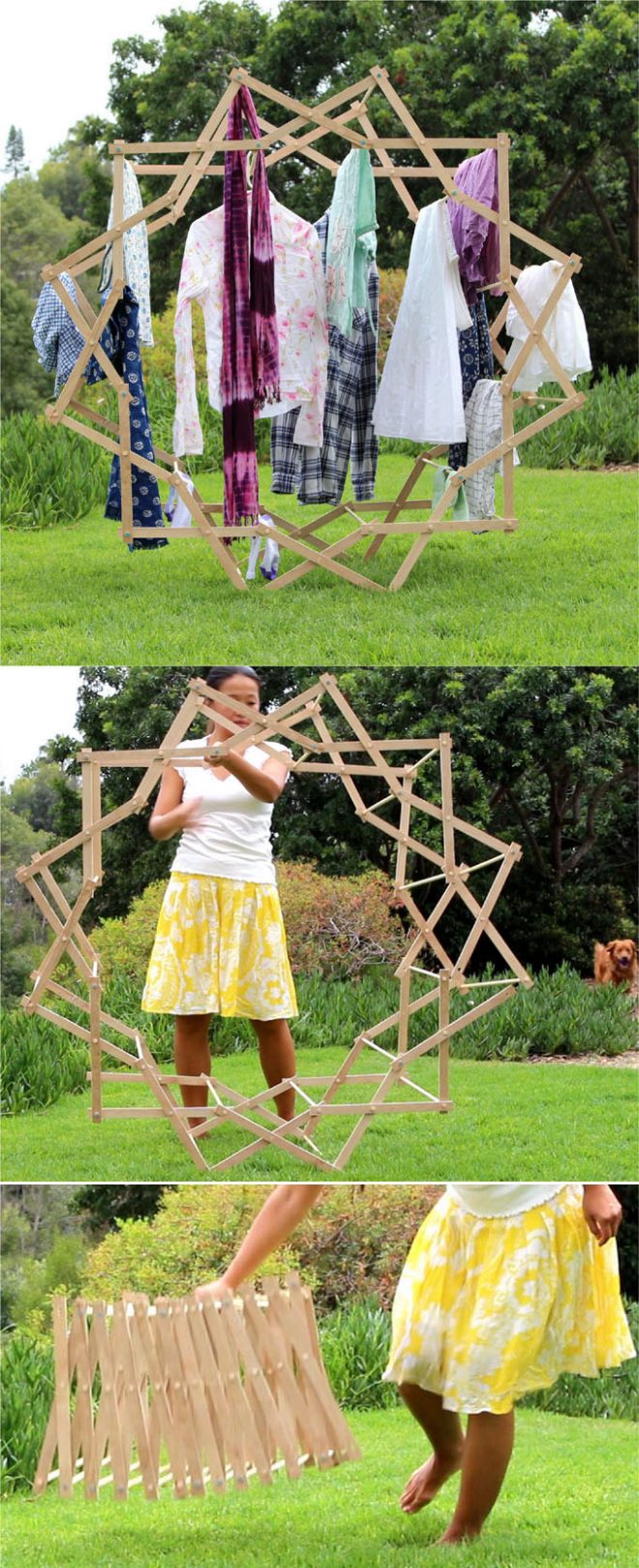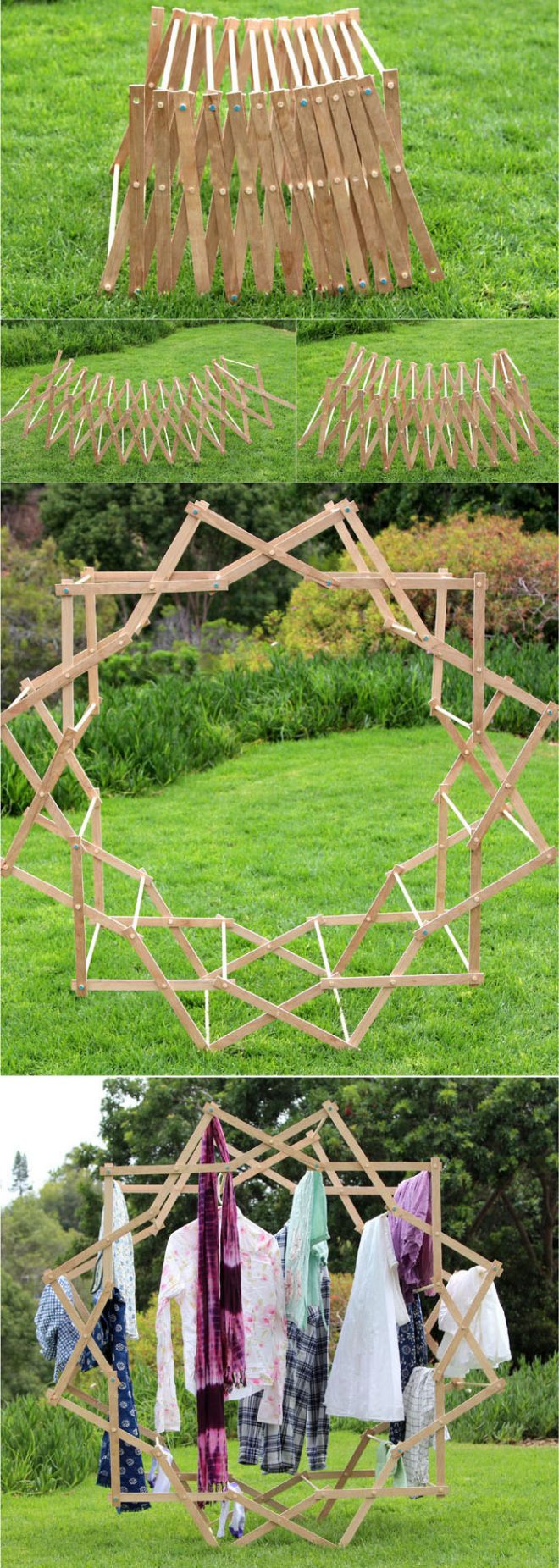 Many of us like to sun dry our clothes. The problem is that it is not easy to find a clothing rack that is functional, beautiful, and compatible. You can buy clothing racks from department stores or online. However, if you want something that is cool and special, this DIY Foldable Star Shaped Clothes Drying Rack Tutorial is your good news.